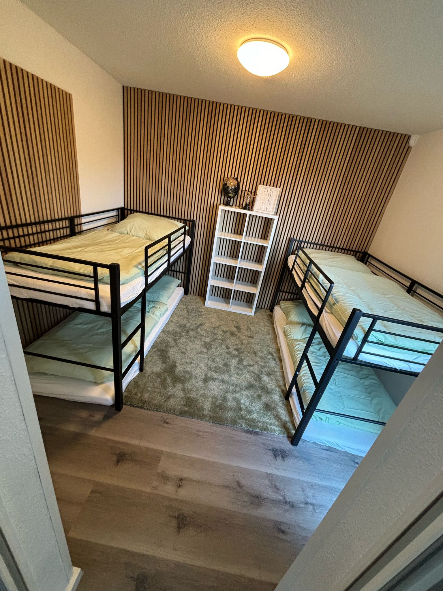 Das Kinderzimmer ist mit zwei Etagenbetten ausgestattet und bietet viel Platz für kleine und große Abenteurer. Hier können die Kinder gemütlich schlafen und sich wohlfühlen.