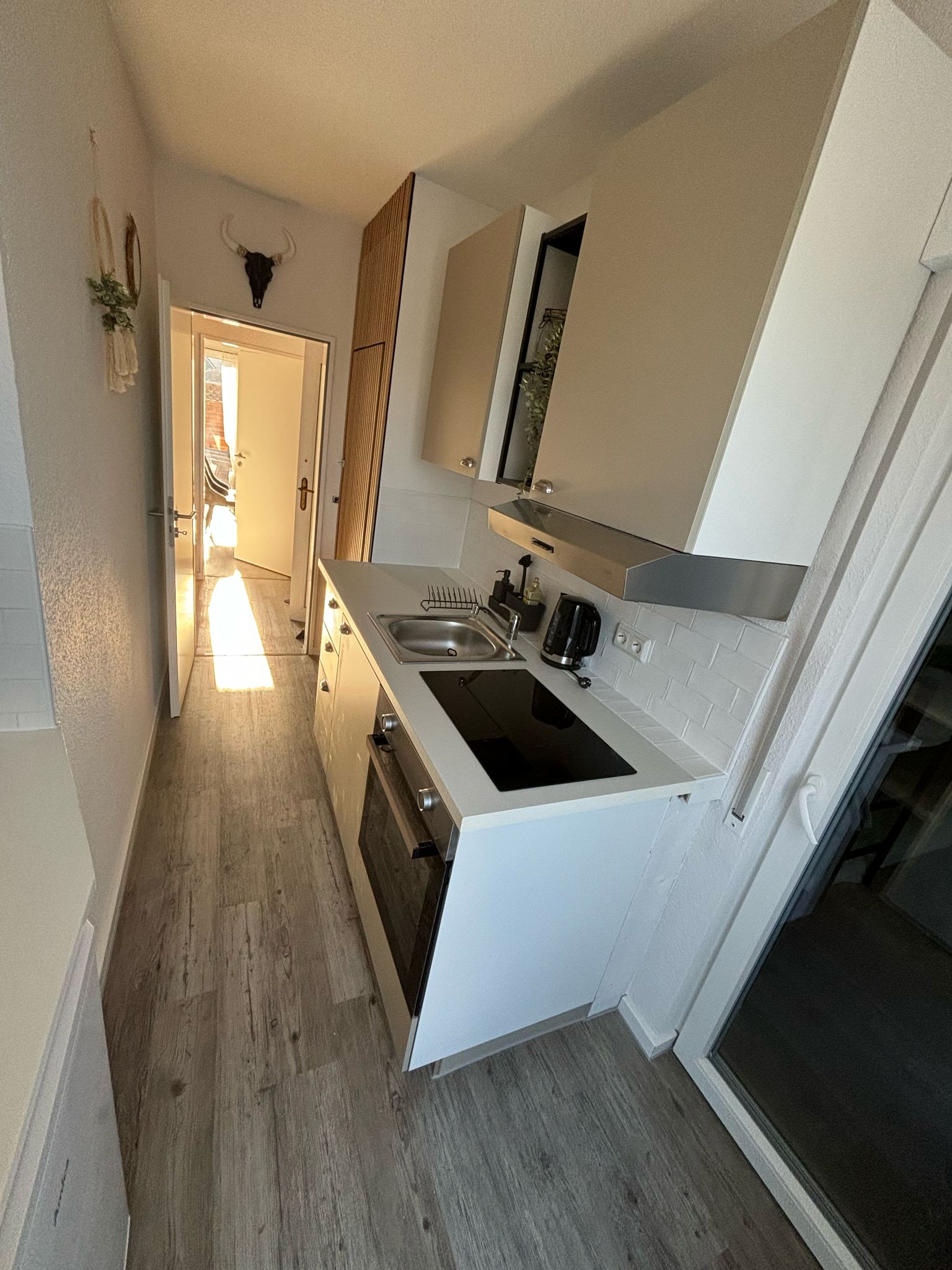 Die Küche bietet Backofen, Herd, Kühlschrank und Spüle – ideal für die Zubereitung eigener Mahlzeiten während des Aufenthalts.